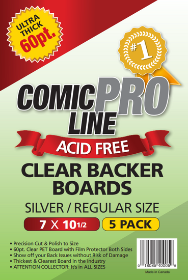 - Premium Material: ComicProLine's 60pt boards take a different approach. These are not paper backer boards but are instead constructed from two materials you can choose from: acrylic or P.E.T.